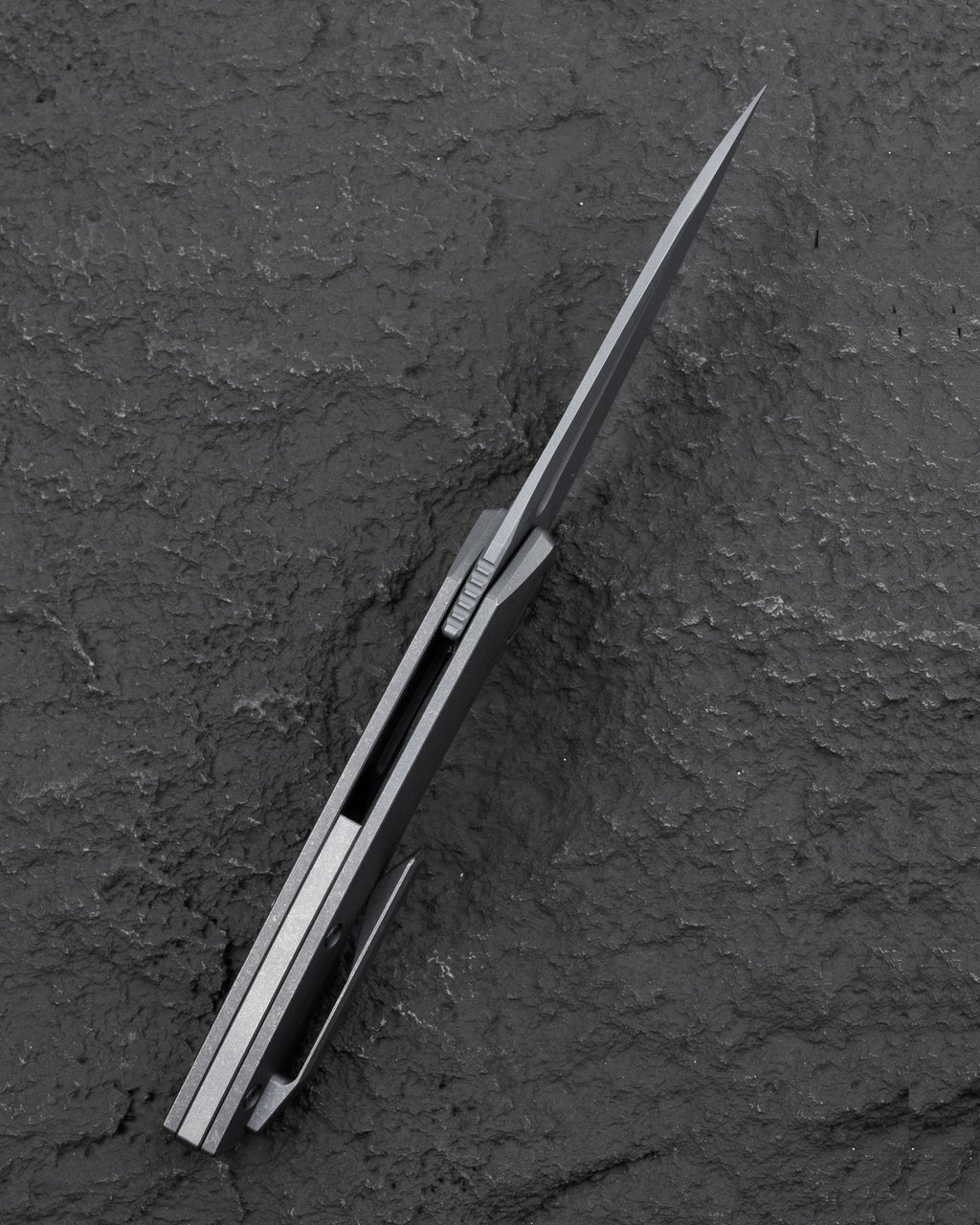 The Bestech VK-NAVI BT2404B represents a pinnacle of modern folding knife engineering, combining premium materials with meticulous craftsmanship. Built around a MagnaCut blade—renowned for exceptional edge retention and corrosion resistance—this knife delivers professional-grade performance in a refined package. The blade features a sophisticated dark bead blast and stone wash finish that enhances both aesthetics and functionality. The titanium handle frame lock construction provides exceptional strength while maintaining a lightweight profile at just 115g. Every component reflects deliberate design choices: ceramic ball bearings ensure smooth, reliable deployment; the dark bead blast and stone wash treatment creates a cohesive visual language across the handle, clip, and backspacer; and red copper blade inlay adds a striking accent. At 7.933 inches open and 4.646 inches closed, the VK-NAVI balances cutting capability with pocket-friendly proportions. The 3.287-inch blade length and 0.138-inch thickness optimize the geometry for slicing tasks while maintaining structural integrity. Designed by Vulpex Knives, this is an EDC knife engineered for discerning users who demand both performance and refinement.
