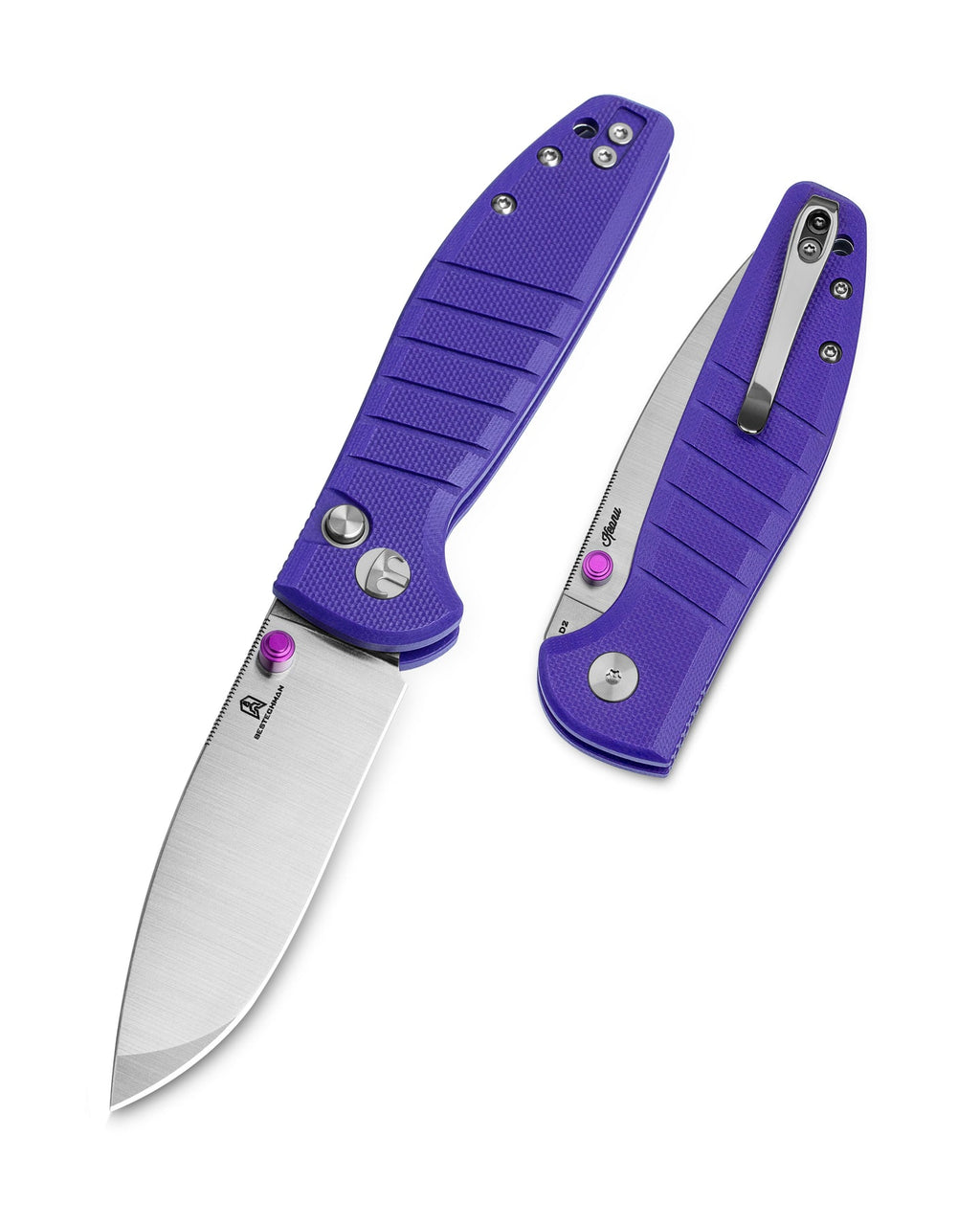 The Bestechman Goodboy Jr. BMK10C represents a refined compact folding knife engineered for everyday carry and tactical applications. Featuring a 2.83-inch D2 steel blade with a distinctive satin and stonewash finish, this knife delivers excellent edge retention and corrosion resistance in a lightweight package weighing just 71g. The ergonomic purple G10 handle spans 4.05 inches and provides superior grip texture and durability in demanding conditions. Its button lock mechanism ensures reliable blade security during use, while the deep-carry pocket clip accommodates both left and right-handed carry preferences. With an overall length of 6.88 inches when deployed, the Goodboy Jr. balances accessibility with discretion for professionals and enthusiasts alike. Designed by Keanu and manufactured to exacting standards, this knife combines practical functionality with refined aesthetics. The 0.11-inch blade thickness optimizes the balance between cutting performance and structural integrity, making it an excellent choice for those seeking a dependable mid-sized folder that doesn't compromise on quality or versatility.