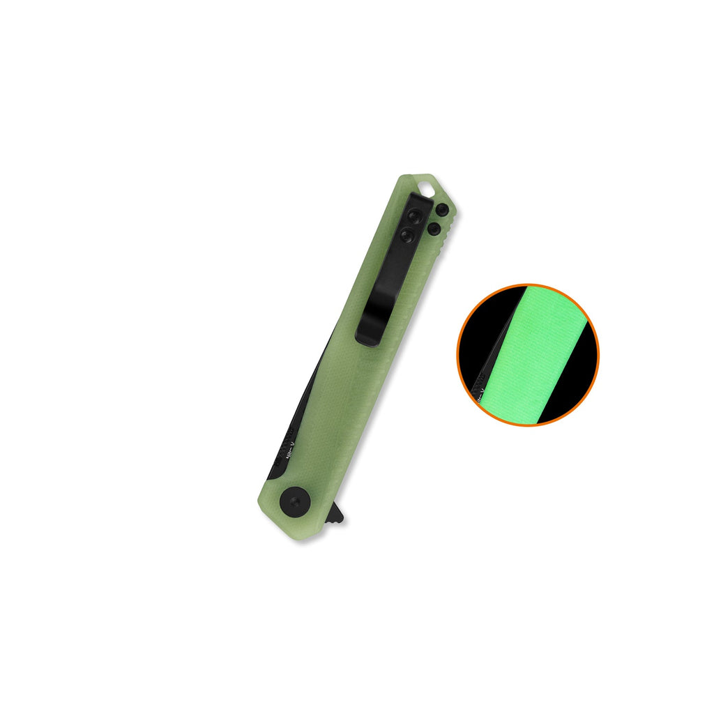 The QSP Mantis QS176-B2 is a premium folding knife engineered for everyday carry and tactical applications. Featuring a Nitro-V blade with a black washed finish, this knife delivers exceptional edge retention and corrosion resistance. The clip-point blade design provides versatility for cutting tasks, while the 3.42-inch blade length offers optimal balance between functionality and portability. The glow-in-the-dark G10 handle ensures visibility in low-light conditions and provides a secure, ergonomic grip. Ceramic ball bearings enable smooth, reliable deployment every time. The liner lock mechanism guarantees safe blade retention during use. Built for durability, the blade achieves 59-61 HRC hardness, ensuring long-lasting sharpness. The reversible deep-carry stainless steel pocket clip accommodates both left and right-handed users. At just 78 grams, this knife remains lightweight without compromising strength. Measuring 7.92 inches open and 4.50 inches closed, the Mantis fits seamlessly into your pocket. Whether you're an outdoor enthusiast, professional, or collector, this knife combines precision engineering with practical design for reliable performance in any situation.